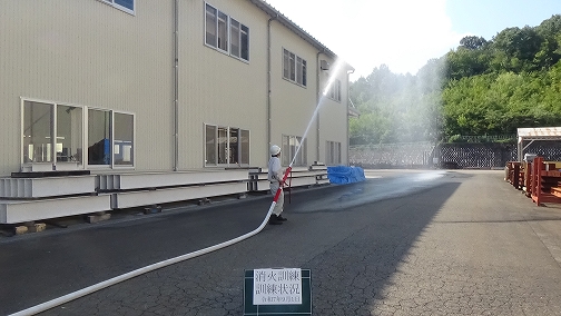 安否確認後、第三工場西側に集合し、消火器の取り扱いの説明を受けました。